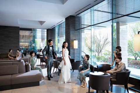 東京スカイツリー®を望む緑豊かなロケーションで、東京駅から5分、埼玉・千葉・神奈川からもアクセス良好。提携神社へも車で5分以内と、和婚や人前式もスムーズに叶います。観光地も近く、ゲストに楽しんでもらえる環境です。